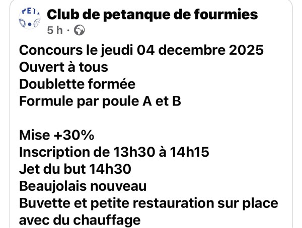 Photo pour le concours de FOURMIES le jeudi 4 décembre 2025