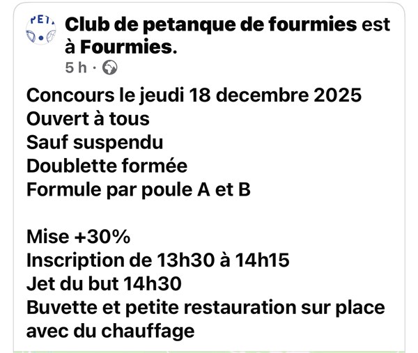 Photo pour le concours de FOURMIES le jeudi 18 décembre 2025