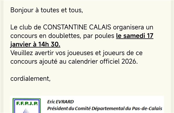 Photo pour le concours de CALAIS le samedi 17 janvier 2026