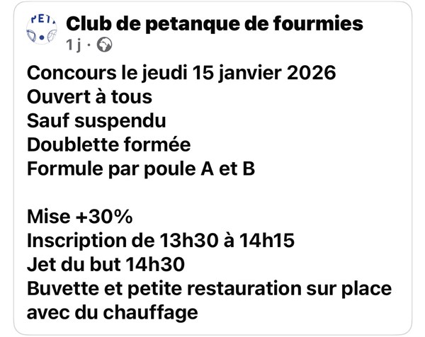 Photo pour le concours de FOURMIES le jeudi 15 janvier 2026