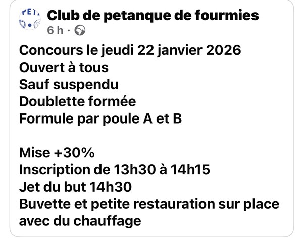 Photo pour le concours de FOURMIES le jeudi 22 janvier 2026