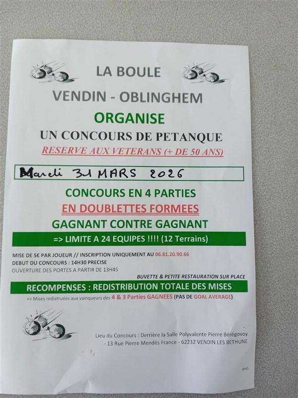 Photo pour le concours de VENDIN LE VIEIL le mardi 31 mars 2026