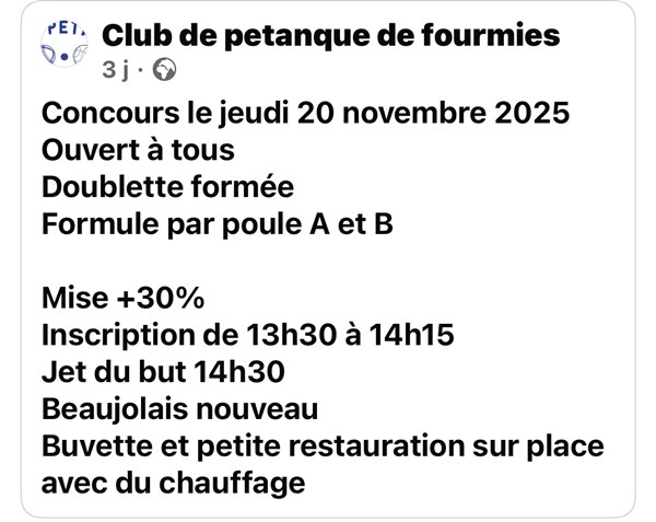 Photo pour le concours de FOURMIES le jeudi 20 novembre 2025