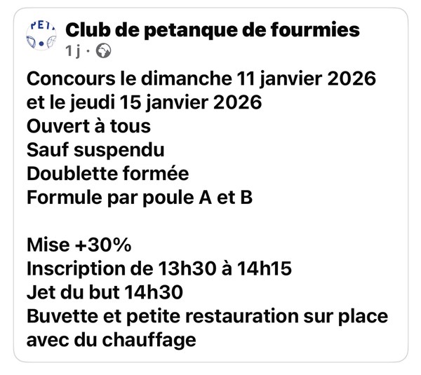 Photo pour le concours de FOURMIES le dimanche 11 janvier 2026